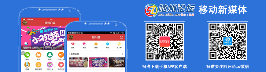 追隨移動互聯(lián)網(wǎng)潮流,隨州論壇手機(jī)客戶端(APP)正式上線,與廣大網(wǎng)友見面。本版只發(fā)布手機(jī)APP客戶端相關(guān)帖子,和版塊主題不相關(guān)主題將做相應(yīng)的版塊歸類處理。隨州論壇手機(jī)APP客戶端使用攻略、BUG反饋、功能介紹專用版塊!