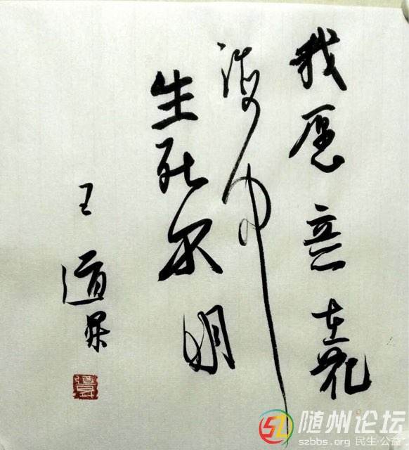 作者:王道升,隨州藝術院院長,隨州市書協(xié)副主席,隨縣書法美術家協(xié)會主席 譯文:我愿意在花海中生死不明 邊幅:34X32cm