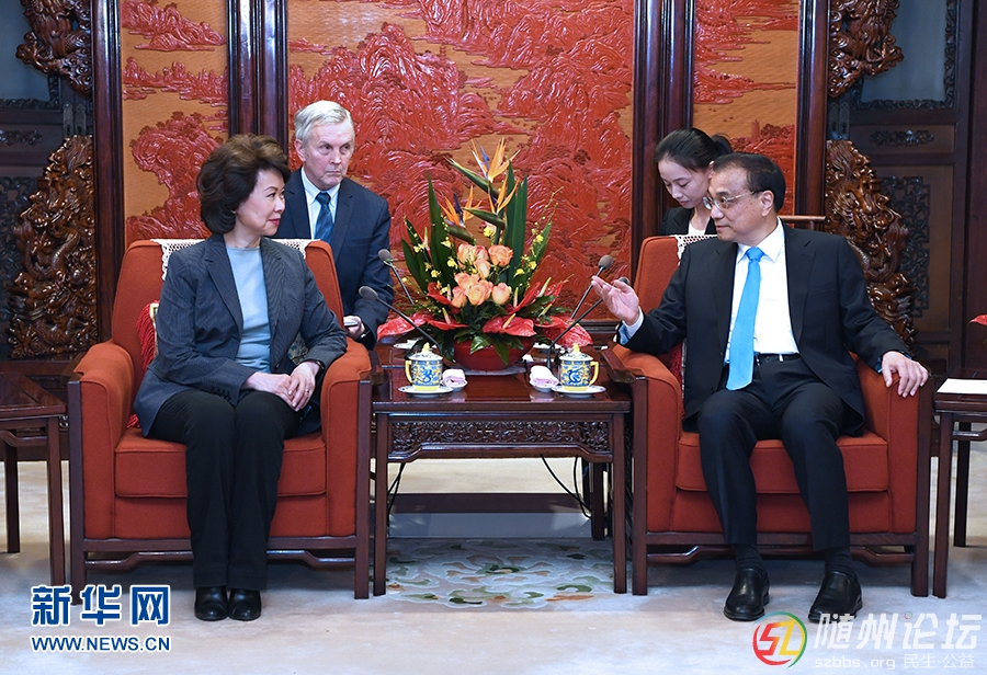 4月26日,國(guó)務(wù)院總理李克強(qiáng)在北京中南海紫光閣會(huì)見(jiàn)來(lái)華訪問(wèn)并出席中美交通論壇第九次會(huì)議的美國(guó)運(yùn)輸部長(zhǎng)趙小蘭。 新華社記者 饒愛(ài)民攝 新華社北京4月26日電(記者白潔)國(guó)務(wù)院總理李克強(qiáng)26日下午在中南海紫 ...