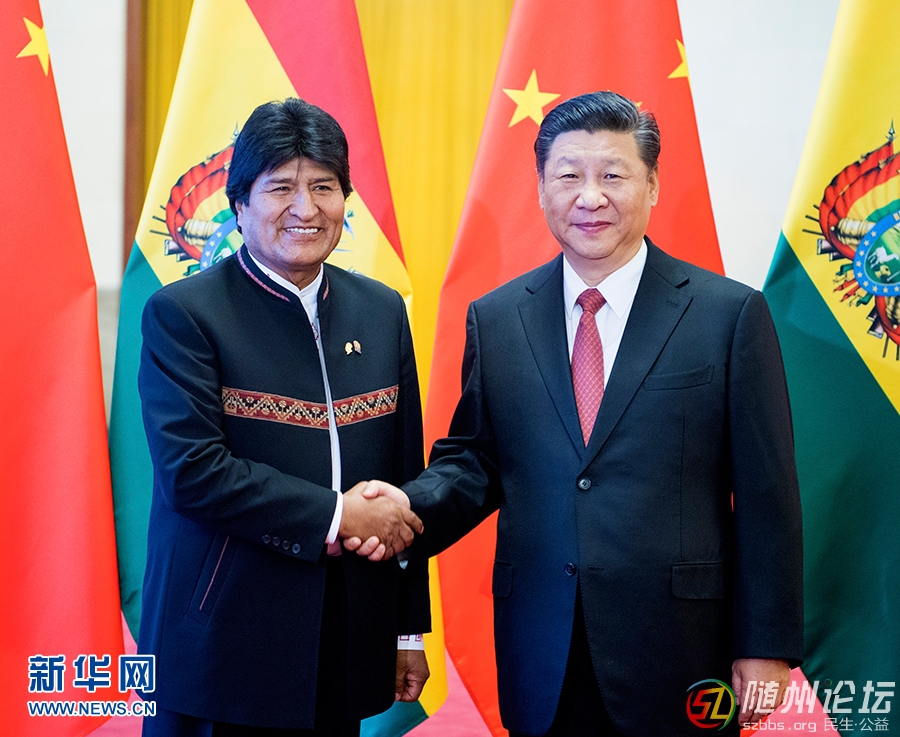 f' H; w( S# [& \$ V. {* o 6月19日,國家主席習近平在北京人民大會堂同玻利維亞總統(tǒng)莫拉萊斯舉行會談。這是會談前,習近平在人民大會堂北大廳為莫拉萊斯舉行歡迎儀式。新華社記者李學仁攝習近平 ...
