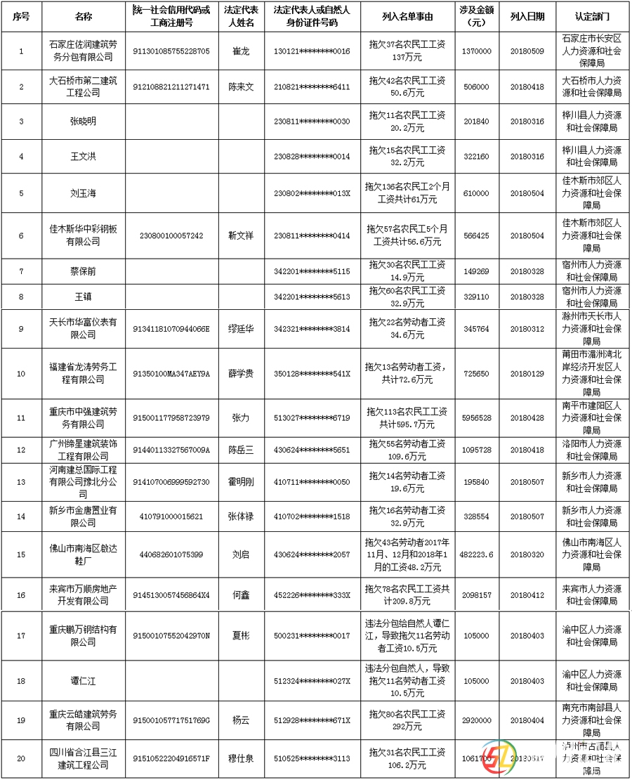 在人社部今日召開(kāi)的新聞發(fā)布會(huì)上,人社部副部長(zhǎng)邱小平介紹了保障農(nóng)民工工資支付工作,建立和實(shí)施拖欠農(nóng)民工工資“黑名單”制度的相關(guān)情況。邱小平公布了第一批拖欠農(nóng)民工工資“黑名單”,共涉及14家違法企業(yè)和6名違 ...