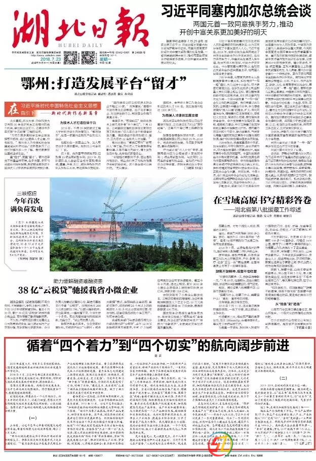 2013年7月,習(xí)近平總書記視察湖北,從國家發(fā)展戰(zhàn)略的層面對湖北經(jīng)濟(jì)社會發(fā)展作出科學(xué)定位。- }/ e; T7 l- s: j: ? 2018年4月,習(xí)近平總書記再次視察湖北,為長江經(jīng)濟(jì)帶發(fā)展把脈定向、掌舵領(lǐng)航,對新時代湖北改革發(fā)展 ...