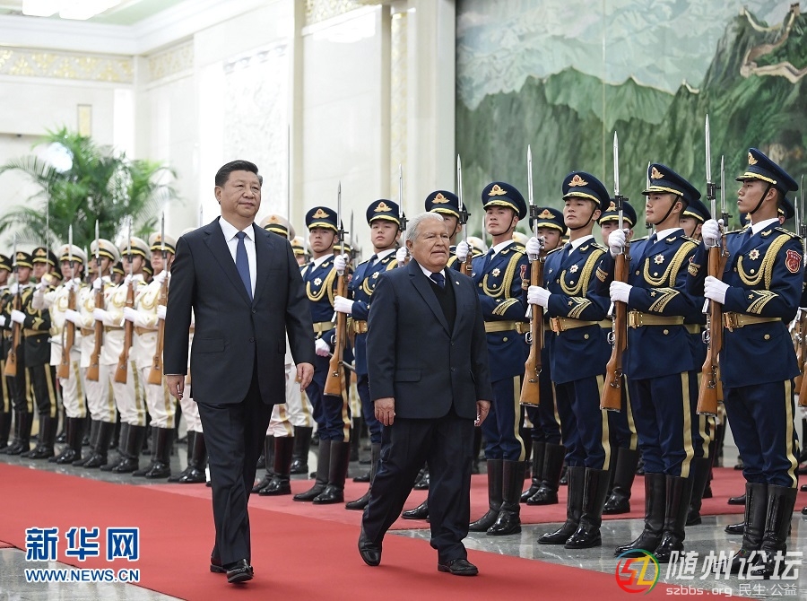 [url=] [/url]' h! n$ C0 ~) h+ _ 11月1日,國(guó)家主席習(xí)近平在北京人民大會(huì)堂同薩爾瓦多總統(tǒng)桑切斯舉行會(huì)談。這是會(huì)談前,習(xí)近平在人民大會(huì)堂北大廳為桑切斯舉行歡迎儀式?!⌒氯A社記者申宏攝 新華社北京11月 ...