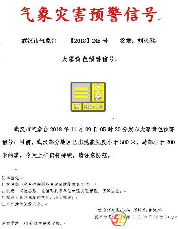 武漢中心氣象臺(tái)2018年11月09日05時(shí)16分發(fā)布大霧黃色預(yù)警信號(hào):目前,我省部分地區(qū)已出現(xiàn)能見(jiàn)度小于500米,局部小于200米的霧,今天上午仍將持續(xù),請(qǐng)注意防范。實(shí)時(shí)路況>>今早7:00分全省高速公路實(shí)時(shí)路況,G4京港澳 ...