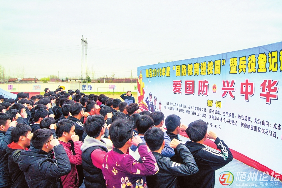 }; B0 _2 w( m, |) @5 V 3月22日,隨縣舉行2019年度“國(guó)防教育進(jìn)校園”暨兵役登記證發(fā)放啟動(dòng)儀式,1900多名師生參加活動(dòng)。該活動(dòng)旨在貫徹習(xí)近平強(qiáng)軍思想,鞏固學(xué)校國(guó)防教育主陣地,打牢青年學(xué)生參 ...