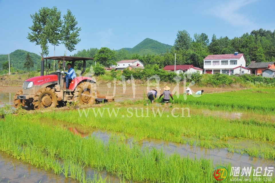 大洪山旅業(yè)公司通過引流山泉水等辦法,滿足景區(qū)藝術(shù)稻田及附近300畝農(nóng)田插秧用水。圖為6月15日,珍珠泉一組村民正在整地插秧。(隨州日?qǐng)?bào)特約記者 賀曉利、通訊員劉慧攝) ...