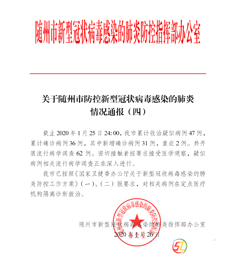關(guān)于隨州市防控新型冠狀病毒感染的肺炎情況通報(四) 1 s+ t# s/ |' B& G6 I( I a$ M & u/ D4 L% W( C' ]4 d" V