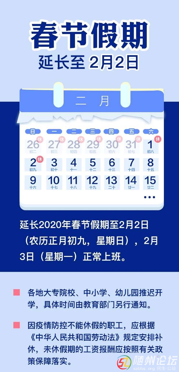 國務(wù)院辦公廳26日發(fā)布關(guān)于延長2020年春節(jié)假期的通知。經(jīng)國務(wù)院批準(zhǔn),為加強新型冠狀病毒感染的肺炎疫情防控工作,有效減少人員聚集,阻斷疫情傳播,更好保障人民群眾生命和身體健康,現(xiàn)將延長2020 年春節(jié)假期的具體 ...