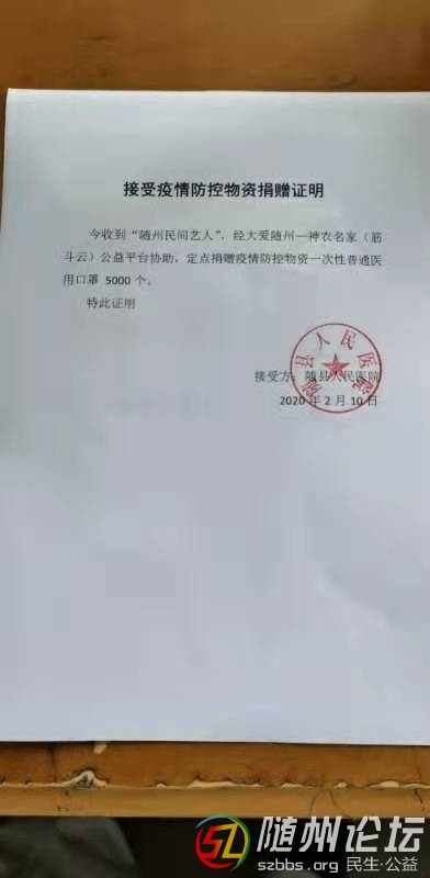 本帖最后由 隨州日報 于 2020-2-11 12:00 編輯 隨州民間藝人捐贈醫(yī)護物資 隨州日報訊(全媒記者李文軍)2月9日晚上9時30分許,一輛滿載著由隨州民間藝人捐資購買的口罩、防護服等醫(yī)護物資從仙桃運 ...