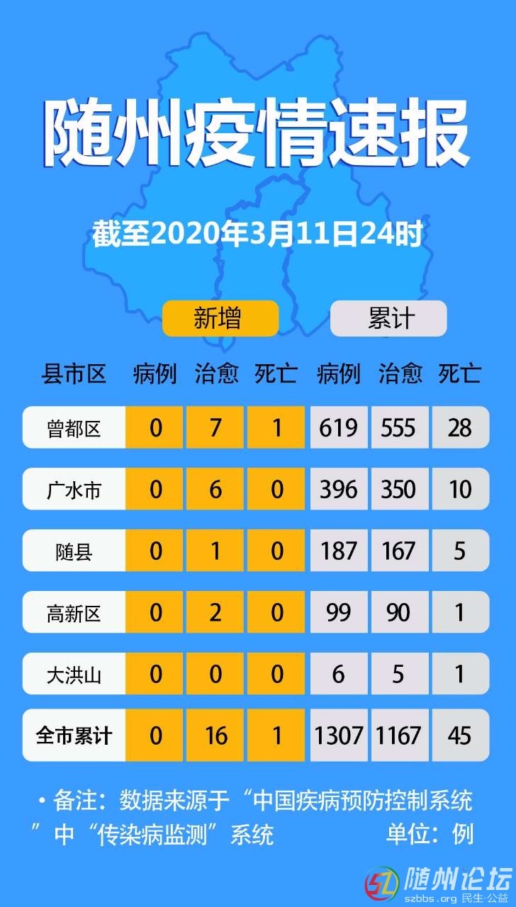 隨州疫情速報(bào)(截至2020年3月11日24時(shí)); w3 C: t) z% t) ^- x% l% ?! g " M. T) { A2 \8 X& I2 [