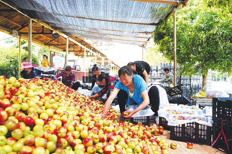 5月中旬開始,隨縣尚市鎮(zhèn)的油桃陸續(xù)上市。5月20日,來自河南的水果商前來采購今年第一批5萬斤“曙光”油桃,出口至越南。圖為尚市鎮(zhèn)群金村桃花園廣場的集中收購點(diǎn),村民們正在挑選、裝箱。(隨州日報(bào)全媒記者 ...
