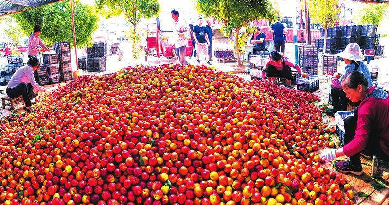 隨著疫情防控形勢持續(xù)好轉,一度滯銷的隨縣尚市鎮(zhèn)水果外銷開始呈現(xiàn)恢復性增長。6月7日,尚市鎮(zhèn)群金村迎來了首家廣東客商上門采購,當天銷售油桃、毛桃近5萬公斤。(隨州日報全媒記者李文軍攝) ...
