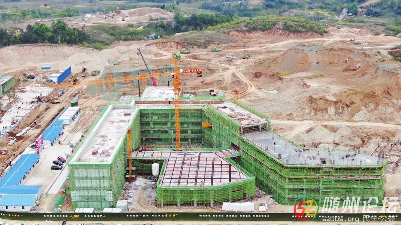 編鐘學(xué)校初中部教學(xué)樓主體施工緊鑼密鼓,預(yù)計(jì)4月底封頂。圖為4月6日施工場面。(隨州日報(bào)全媒記者徐斌攝)
