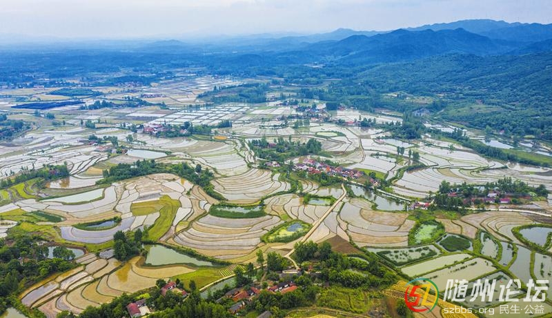 5月17日,記者航拍隨縣洪山鎮(zhèn)鮑集、黃家寨、周家灣3個(gè)村梯田。村民趁雨后天晴及時(shí)整田插秧,到處是一派繁忙景象。從天空俯瞰,萬畝梯田水波蕩漾,層層疊疊,勾勒出一幅美麗的山水畫卷,宛若世外桃源。 (隨州 ...