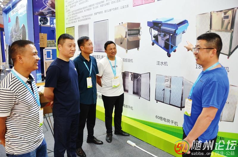 曾都區(qū)逸村機(jī)械制造公司是一家數(shù)字化、自動(dòng)化食用菌機(jī)械制造企業(yè),擁有十余項(xiàng)國(guó)家實(shí)用新型專利,產(chǎn)品出口美國(guó)、日本等地。圖為6月3日,公司負(fù)責(zé)人(右一)在第二屆中國(guó)食用菌產(chǎn)業(yè)博覽會(huì)上介紹產(chǎn)品的性能。( ...