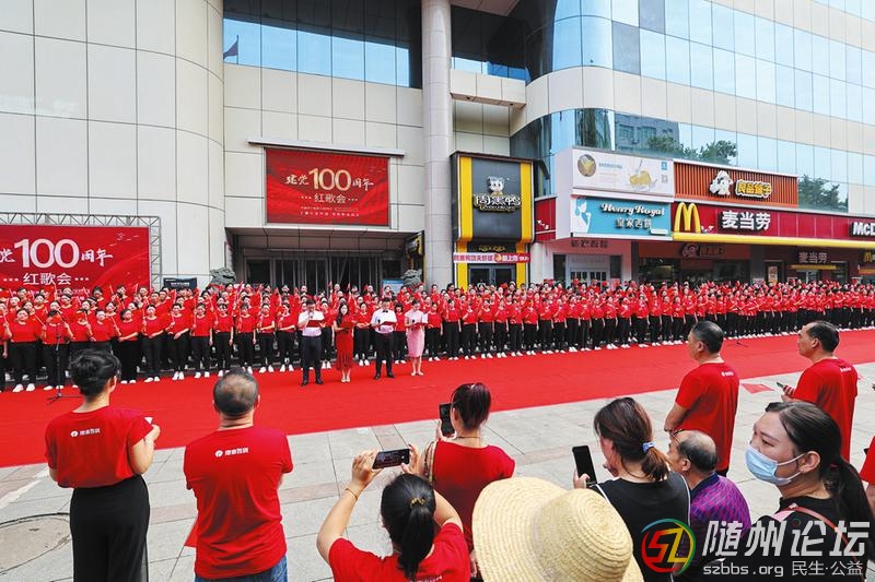 7月1日,銀泰隨州新世紀(jì)購物中心舉行建黨100周年紅歌會(huì),300余名黨員和職工一起高聲歌唱黨、歌唱祖國,共同慶祝黨的百年華誕。 (隨州日?qǐng)?bào)全媒記者李文軍攝) ...