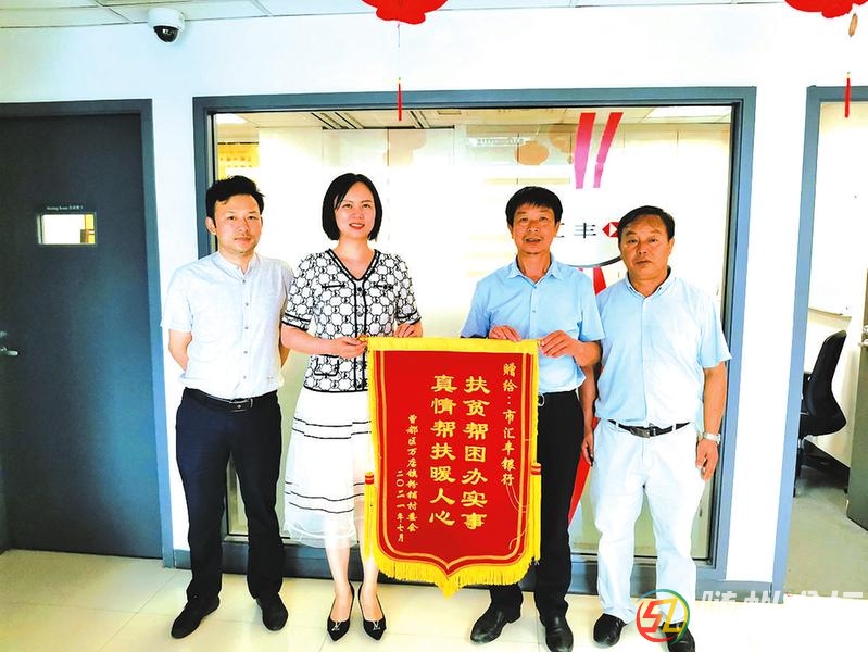 7月23日,曾都區(qū)萬店鎮(zhèn)粉鋪村將一面印有“扶貧幫困辦實事真情幫扶暖人心”的錦旗送到曾都匯豐村鎮(zhèn)銀行,真誠感謝該行對粉鋪村的真情幫扶。(隨州日報通訊員蔡夢琴攝) ...