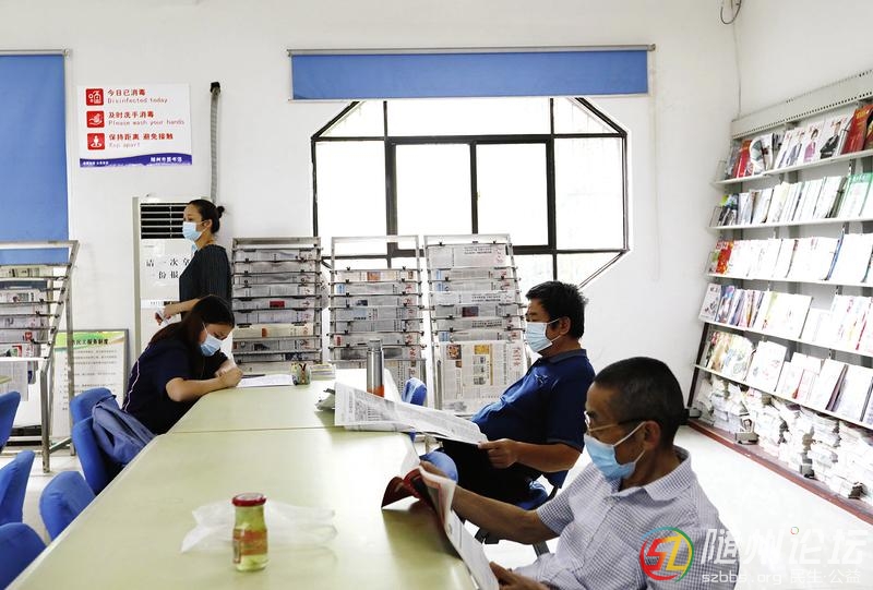 8月3日,在市圖書(shū)館內(nèi)看書(shū)的讀者們戴著口罩、保持適當(dāng)距離。(隨州日?qǐng)?bào)全媒記者徐斌攝)