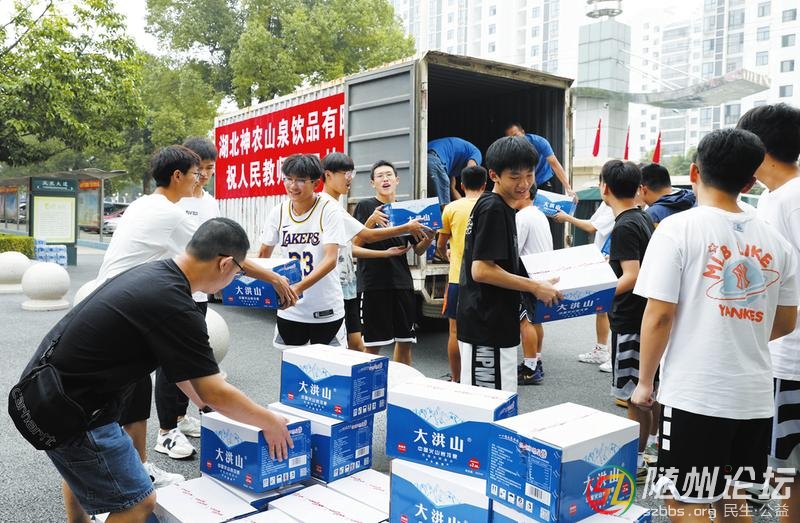 連日來,瑞帝集團(tuán)湖北神農(nóng)山泉飲品有限公司先后向隨州10多所中小學(xué)捐贈(zèng)3300件天然飲用水,價(jià)值16萬元,用實(shí)際行動(dòng)關(guān)愛教職員工,向老師們致以節(jié)日的問候。圖為9月10日,瑞帝集團(tuán)在曾都一中捐贈(zèng)。 (隨州日報(bào) ...