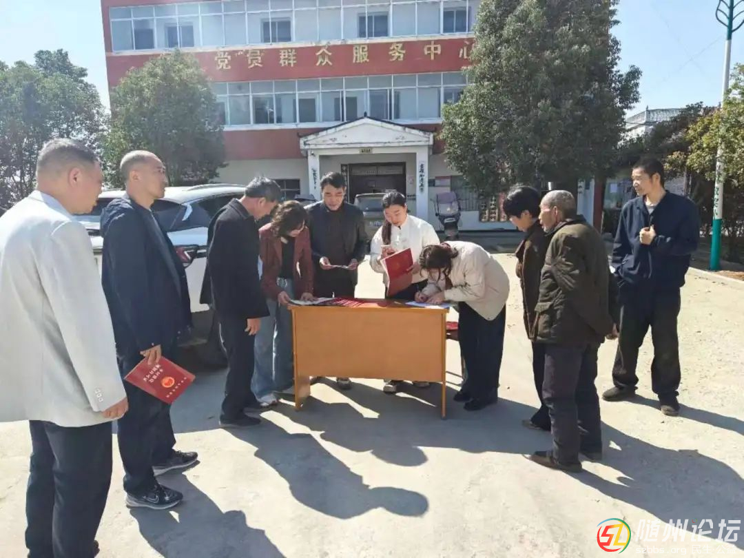 3月25日,隨縣自然資源和規(guī)劃局不動(dòng)產(chǎn)登記中心工作人員到唐縣鎮(zhèn)開展送證上門服務(wù)。(陳沖)