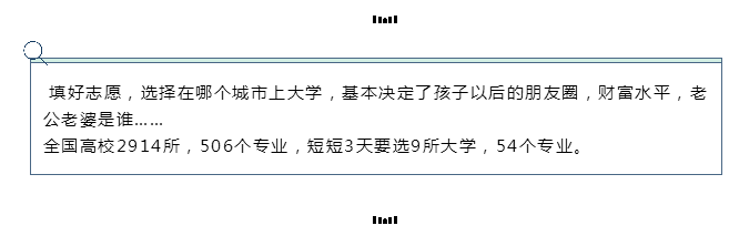 在高考進(jìn)入倒計(jì)時(shí)階段 如何能在最關(guān)鍵的時(shí)刻提高成績? 考后又該如何填報(bào)高考志愿? 成為目前高考生和家長關(guān)注的焦點(diǎn) 高考成績是將決定孩子, 能上什么水平的大學(xué), 而志愿的填報(bào), 才能最終確定孩子上哪個(gè)大學(xué)。 高考提分,怎么辦? 考試焦慮,怎么辦? 大學(xué)的分校與校區(qū)究竟有何區(qū)別? 提前批次究竟該如何選擇? 平行志愿和梯度志愿有何差別? 如何應(yīng)對院校不同的專業(yè)安排辦法? 退檔和滑檔如何避免? 專業(yè)一字之差,人生截然不同? 身體條件,竟然也會造成退檔? 不同性格,究竟適合什么專業(yè)? 專業(yè)名稱一樣,不同院校, 就業(yè)發(fā)展前景一樣? 面對未來,學(xué)校、專業(yè)、城市, 該如何抉擇? ... ... 填報(bào)高考志愿是一個(gè)比較復(fù)雜的工程,成績無法改變,但掌握錄取規(guī)則,的確有可能找到最大限度匹配分?jǐn)?shù)和心意的志愿。從這個(gè)意義上說,填好志愿,就是在給高考“漲分”但大多數(shù)考生和家長又沒有相應(yīng)的經(jīng)驗(yàn),難免會出現(xiàn)這樣、那樣的失誤。那么,志愿填報(bào)有哪些誤區(qū)呢?