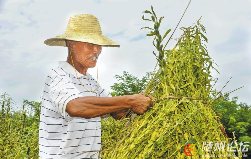 隨縣厲山鎮(zhèn)神農(nóng)社區(qū)小農(nóng)場崗地黃豆、紅苕、芝麻等旱秋作物長勢良好喜獲豐收。圖為該鎮(zhèn)農(nóng)民趁晴下地收割芝麻。(隨州日報全媒記者孫洪濤、通訊員葵琳、老木攝) ...